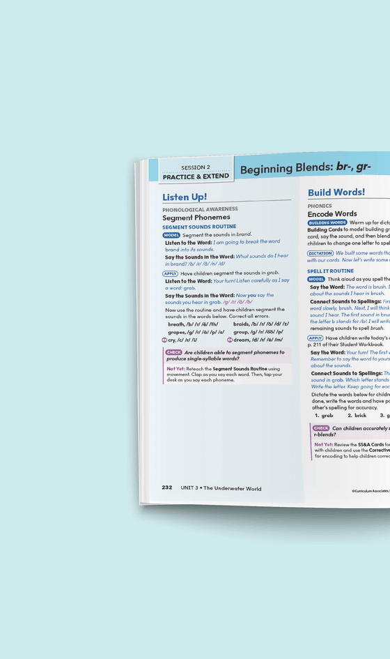 In Session 1, fully scripted instructional routines are used to introduce new skills in phonological awareness, phonics, and high-frequency words.