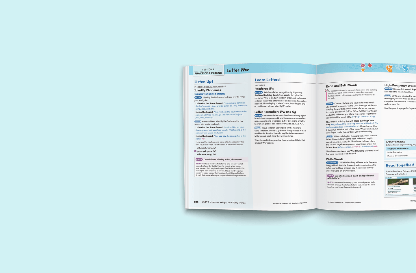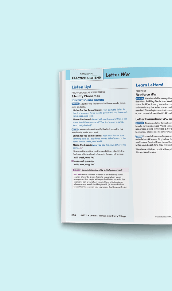 Students practice letter formation, phonics, and high-frequency word skills in their Student Worktext.