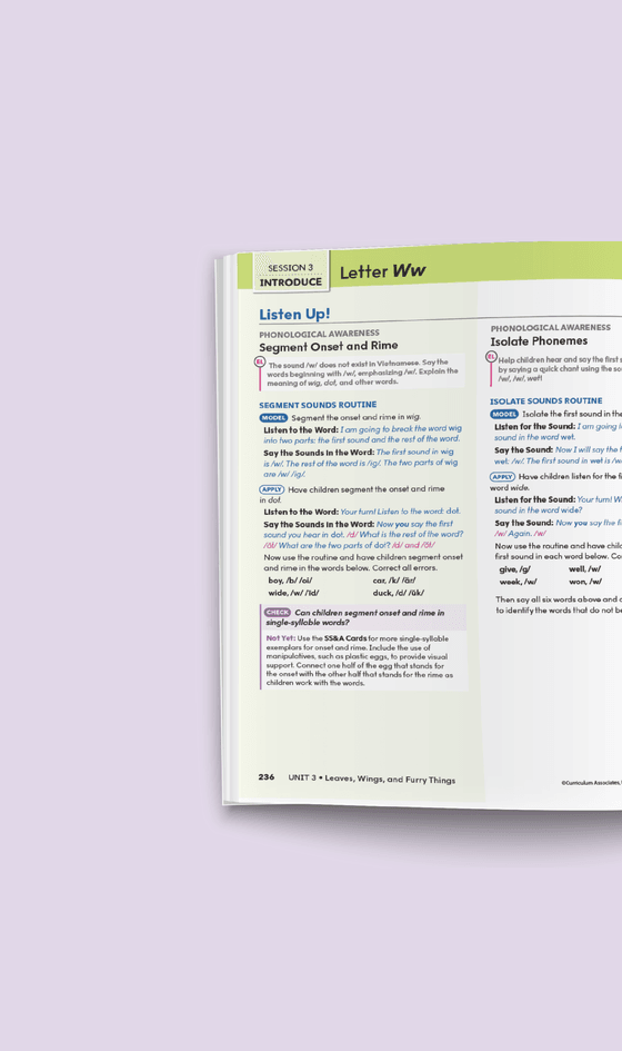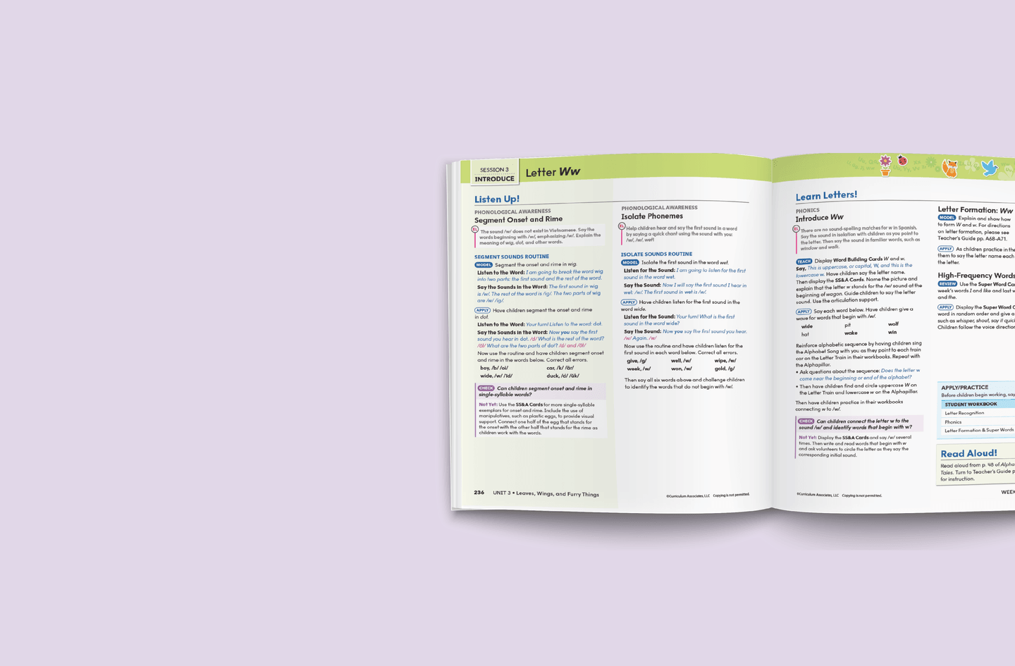 Student Worktext activities provide practice in letter formation, phonics, and high-frequency words.